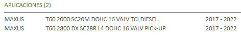AMORTIGUADOR DELANTERO R/L - GAS / MAXUS T60 2.0/2.8 2017/2022 STP Stock por sucursal Stock por sucursal $ 29.590 cantidad Agregar al carro