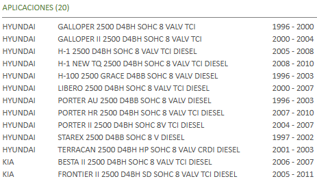 BOMBA AGUA / HYUNDAI H100 2.5 GRACE 96/03 GALLOPER-H-1-LIBERO-PORTER-TERRACAN-BESTA-FRONTIER-MITSUBISHI L200-MONTERO-PAJERO STP Stock por sucursal Stock por sucursal $ 43.890 cantidad Agregar al carro