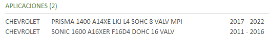 BOMBA DE BENCINA CHEVROLET SONIC 1.6 2011/2016 STP Stock por sucursal Stock por sucursal $ 42.350 cantidad Agregar al carro