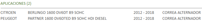 CORREA ALTERNADOR PEUGEOT PARTNER / CITROEN BERLINGO 6PK 975 STP Stock por sucursal Stock por sucursal $ 13.090 cantidad Agregar al carro