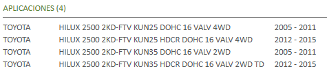 FLUJOMETRO / TOYOTA HILUX 2.5 KUN25/35 Stock por sucursal Stock por sucursal $ 31.790 cantidad Agregar al carro