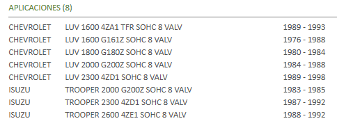 JGO. BALANCIN VALVULA 8 UNI / CHEVROLET LUV 1.6 - 1.8 - 2.0 - 2.3 ATSUKI Stock por sucursal Stock por sucursal $ 49.390 cantidad Agregar al carro