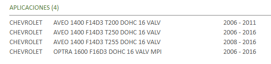JUEGO DE EMPAQUETADURA MOTOR / CHEVROLET AVEO 1.4 06/16 - OPTRA 1.6 06/16 MANDO Stock por sucursal Stock por sucursal $ 61.589 cantidad Agregar al carro