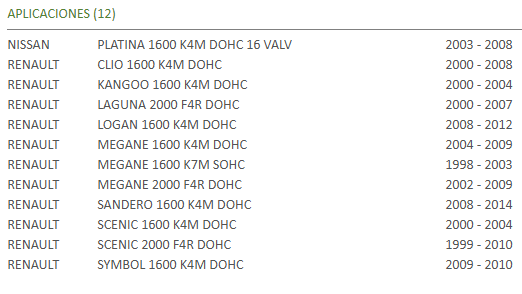 JUEGO TAQUIE VALVULA, NISSAN PLATINA 1600 K4M DOHC 03/08 ADM ESCAPES HID Sin Definir Stock por sucursal Stock por sucursal $ 36.289 cantidad Agregar al carro