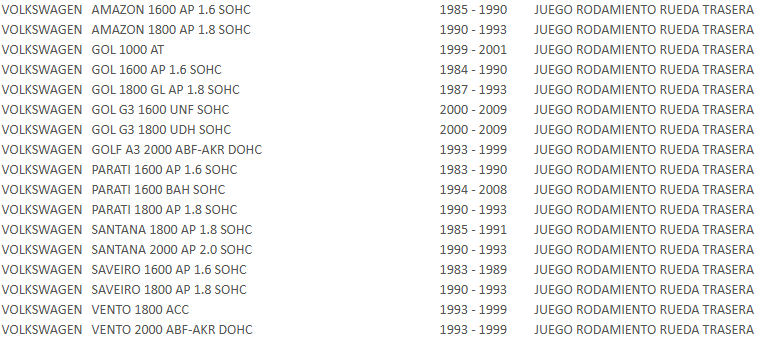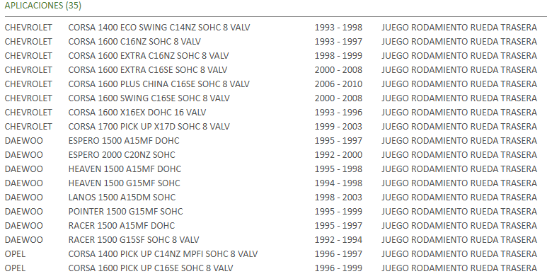 KIT RODAMIENTO RUEDA TRASERA / DAEWOO/CORSA/VOLKSWAGEN + RETENES Stock por sucursal Stock por sucursal $ 6.050 cantidad Agregar al carro