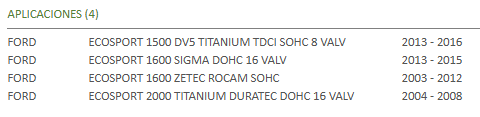 PASTILLAS DE FRENO DEL FORD ECOSPORT 2003/2016 STP Stock por sucursal Stock por sucursal $ 28.589 cantidad Agregar al carro