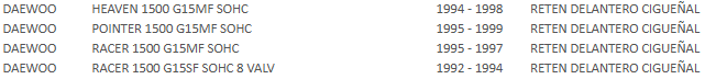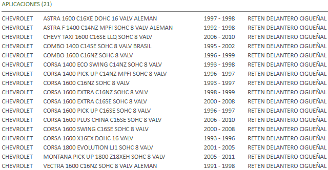 RETEN CIGUEÑAL DELANTERO 26x42x8 / CHEVROLET CORSA/ASTRA/RACER Sin Definir Stock por sucursal Stock por sucursal $ 6.490 cantidad Agregar al carro