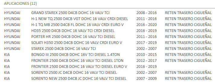 RETEN TRASERO CIGUEÑAL, KIA FRONTIER 2500 D4CB DOHC 12/17 91.00X114.00X 9.0 Sin Definir Stock por sucursal Stock por sucursal $ 12.089 cantidad Agregar al carro