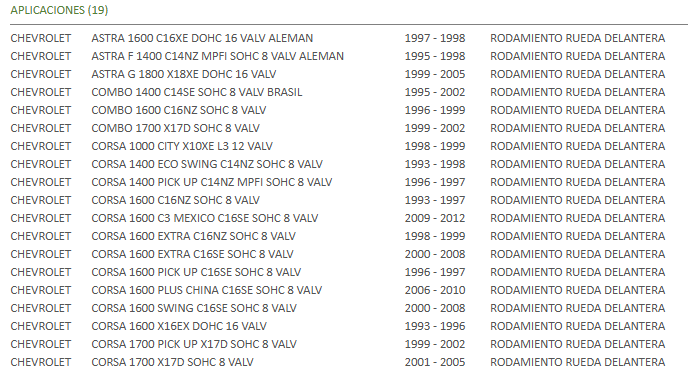 RODAMIENTO DE RUEDA DELANTERO CHEVROLET CORSA 34*66*37 Stock por sucursal Stock por sucursal $ 8.250 cantidad Agregar al carro