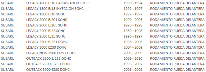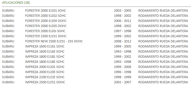 RODAMIENTO RUEDA DEL 42x72x35x38 / SUBARU IMPREZA-LEGACY STP Stock por sucursal Stock por sucursal $ 15.400 cantidad Agregar al carro