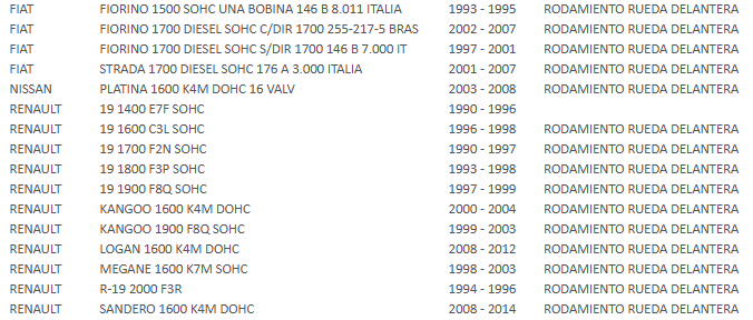 RODAMIENTO RUEDA RENAULT CLIO II /PLATINA/FIORINO / MEGANE / SANDERO STP STP Stock por sucursal Stock por sucursal $ 21.989 cantidad Agregar al carro