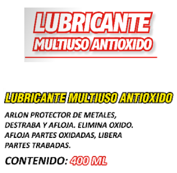 SUELTA PERNOS 400ML // LUBRICANTE MULTIUSO ARLON Sin Definir Stock por sucursal Stock por sucursal $ 3.850 cantidad Agregar al carro